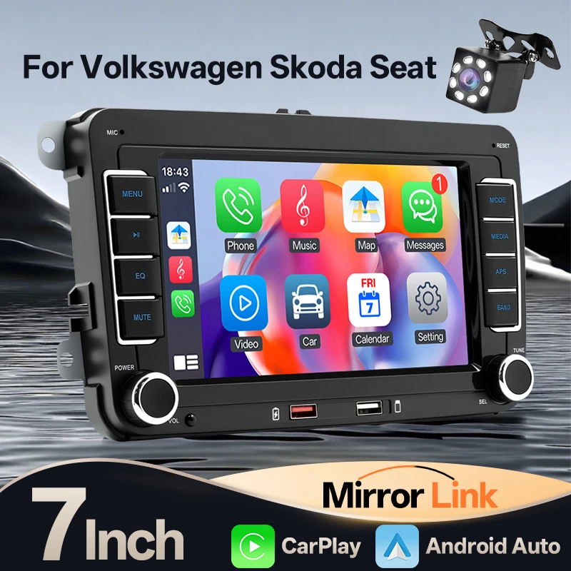 Hippcron 7" 2din Car Radio Multimedia Bluetooth MP5 Player With Wireless Carplay Android Auto For Volkswagen Seat Skoda Passat