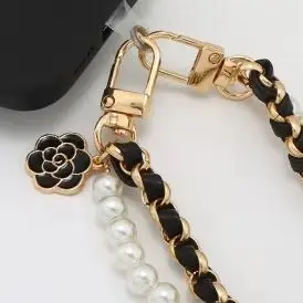 Leather Pearl Camellia Mobile Phone Charm Small Fragrant Wind Universal Mobile Phone Chain Pendant Pearl Chain Metal Key Chain