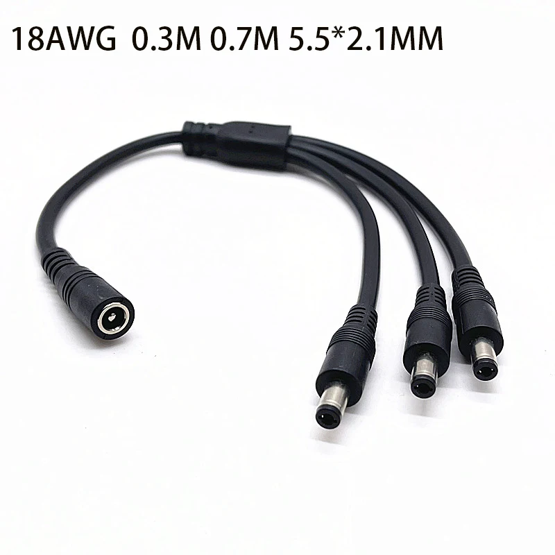 All Copper DC5.5*2.1mm Splitter Cord Monitoring Power Cable 12V LED 1 Female to 3 male 0.3M 0.7M 10A 18AWG