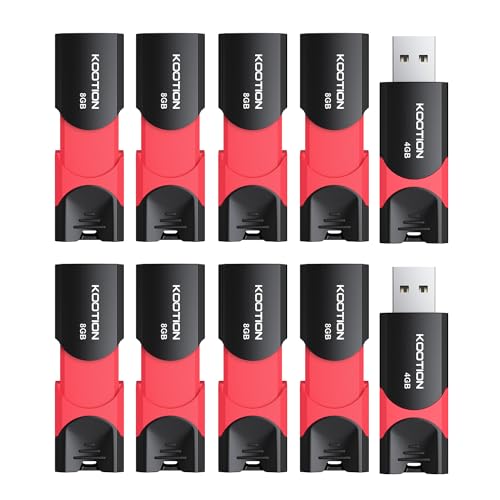 8 GB USB 2.0 Stick 10 Pack, KOOTION USB Memory Flash Drive USB 2.0 Stick 8 GB Thumb Drive USB Drive with LED Indicator for Data Storage Jump Drive (8 GB 10Pack Red-Black)